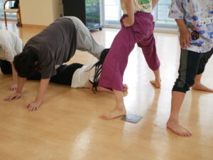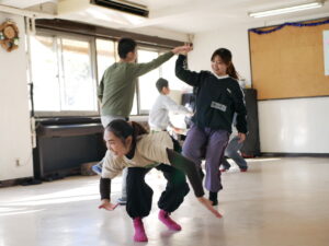 松岡大/舞踏家:あの人数でしか生まれないグルーヴがあったかなと思います。数が重要ではないのですが、ある程度の人のエネルギーが混ざり合うと、それに影響を受けて、おとなしい子も盛り上ったりしますよね。城さんのワークショップの様子を見られたのも刺激になりました。子どもたちにとっても、色んなスタイルのワークショップを体験できるのは良い機会だと思います。