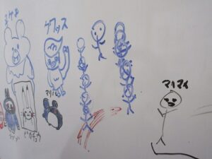 豊島区内で学習支援をおこなっている「まなびすたーり」の協力をえて、参加者となる子どもたちと出会い、今年度のワークショップをスタートして5回目となるこの日。 インド、ネパール、中国、日本と、様々な国のルーツの子どもたちがゆるやかに集い、お喋りをしたり、走り回ったり、ホワイトボードに絵を描いたりしながら、ワークショップが始まるのを待っていました。