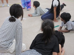 続いて、2つのグループに分かれ、小山さんから出されたお題の順に並ぶワークに挑戦。「背の順」「誕生日順」「靴のサイズ順」など、次々出されるお題に対して、大急ぎでやりとりしながら、楽しそうに取り組んでいました。まだ日本語があまり得意でない子には、自然と英語でフォローを入れてくれる子などもおり、この場でしか交流がない子たち同士でも、関係性が生まれている様子が印象的でした。