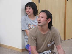 「みなさん、おいで~」と、“もじゃもじゃ”こと、小山まさしさん、“まいまい”こと、泊舞々さんが子どもたちに声をかけると、それぞれのペースで反応する子どもたち。 「学校の新聞に、もじゃもじゃとまいまいのこと書いたよ~」と、話してくれる子の姿からも、アーティストと子どもたちがすっかり打ち解けている様子が伺えます。