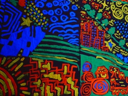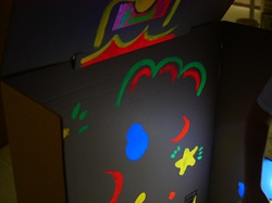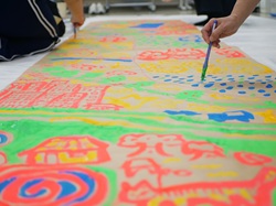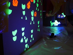 ・つなげた時に、隣の絵同士が偶然つながって見えるようになったりする絵のつながりや、みんなが自由に描いた絵がとても元気なパワーを感じる絵となったのがすごく素敵でした。ブラックライトを当てて光らすのも幻想的でとても最高でした。
