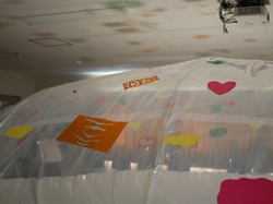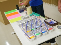 女の子たちは、1日ずつ、異なる内容で実施しました。手や足に絵の具がつくようなダイナミックな活動がしたいという要望と、人見知りな子がいるので1日目にワーっと楽しい経験ができれば2日目につなげやすいかもしれない、という法務教官の方のお話を受けて、1日目に『透明エアドーム』、2日目は『光る絵』をつくりました。