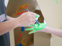 ・(印象に残っていることは)絵具を手に塗って、クラフト紙に手形を付けてみんなで笑ったことです。みんな上手ってほめてくれて嬉しかったです。