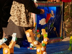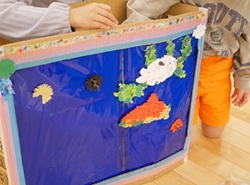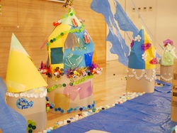 「水の中に入っているように、青いビニールをかぶせたところです」「2階へつながる階段がある海のお家です」自分たちのこだわりポイントを少し恥ずかしそうに、でも、嬉しそうに話してくれました。