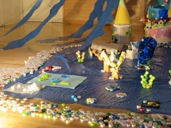 「都市だからお城や大きなタワーがあってもいいかも」「水中都市のまわりは、どうなっているんだろう?」想像を膨らませて、アイデアを出し合いながら、お城や建物などをみんなで一緒につくっていきます。そして、遂に『未来の水中都市』が完成!