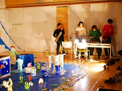 昨年度に引き続き、アーティストの棚川寛子さん(舞台音楽家)、アシスタントの井上貴子さん(俳優)、加藤幸夫さん(俳優)、黒木佳奈さん(俳優)、佐藤円さん(俳優)の5名と共に、5日間のワークショップを実施しました。